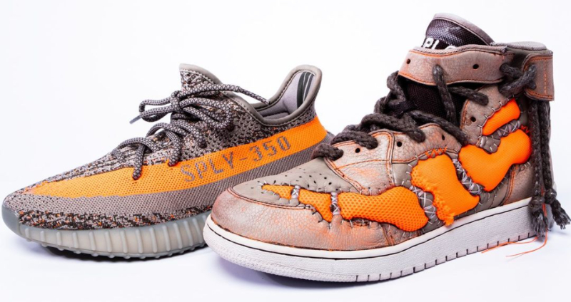 Edmond Looi 過去在 Instagram 個人貼文忠曾多次表示對 YEEZY 的喜愛,這次選用 Air Jordan 1 為題進行改製,可謂是將兩者屬性相結合。設計上將部位逐步拆解並重新染製造就舊化美感,接著融入其應用於 Dino 系列中不同質面的骨骼標籤,強烈的視覺撞色同時充滿趣味。值得一提的是,綁帶配置同時亦讓人想起過去 Dino「Tumboh」的獨特設計。