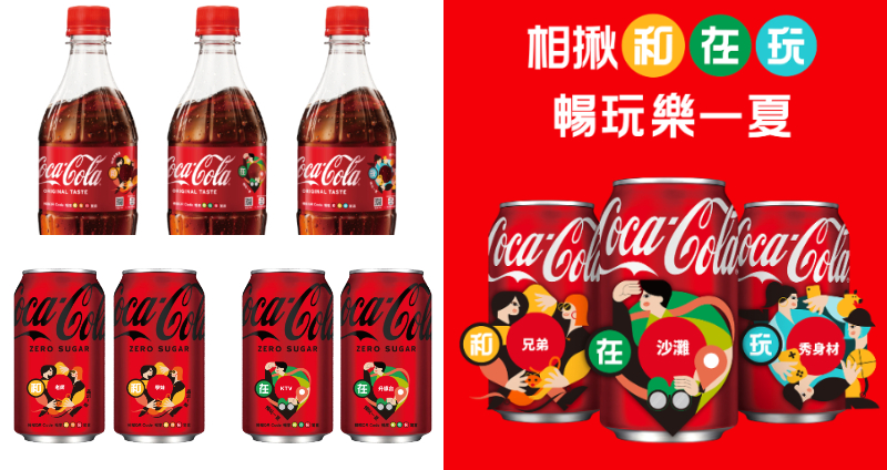 「可口可樂」每每推出創意設計包裝總能掀起話題,迎接即將到來的夏季且瞄準新世代的生活日常,「可口可樂」今夏打造極具趣味性的「和在玩瓶」,將「和」誰、「在」哪裡、「玩」什麼的趣味指令藏於各款瓶身,其百種以上排列組合搭配的玩法,讓消費者可以發揮創意,無論何時何地,都能集結指令與朋友暢玩一整個夏季。