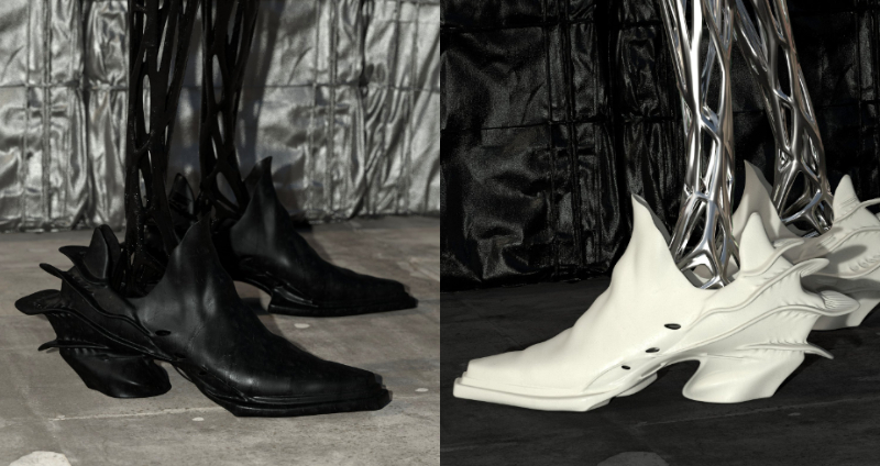 這次鞋作造型延續 SCRY 去年發佈的「Neptune Hybrid」系列,圓弧懸垂的展外塑型依然是彰顯品牌前瞻設計的美學視野,其扇形曲折的自然概念亦是實現想像中來自異星的生命力,在靜態中實現動態之美。而為完整發揮其有機形象,SCRY 在後端製程使用了 HALS 超高速打印技術,優勢勝於傳統光固化技術,並能穩定控制表面紋理,從而有效運用高分子材料實現產出複雜結構。