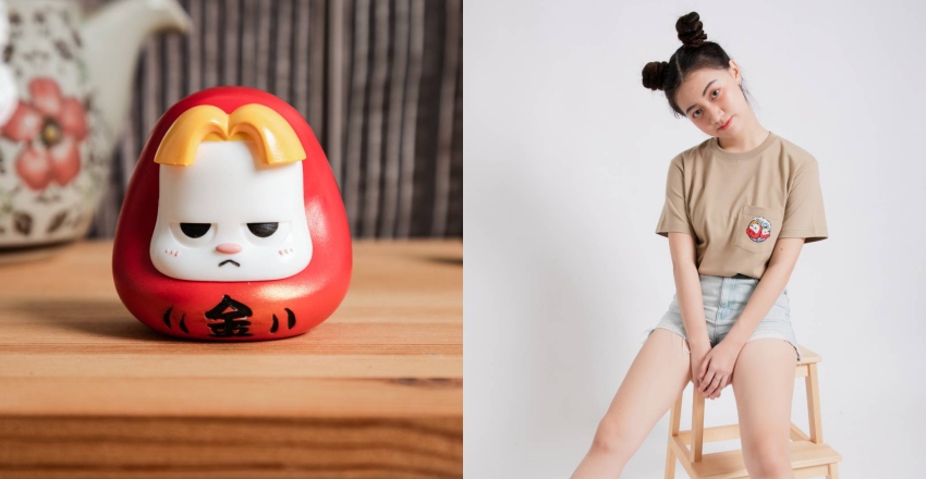▲作為小個女孩的穿搭模範,寶妮將金達摩的T恤搭配出率性態度,想將T恤穿出俐落造型可以學寶妮將袖子捲起,搭配貝雷帽和搶眼的飾品,口袋的圖樣以浮世繪搭配俏皮的金達摩,快一起穿上展現你的漫畫魂!