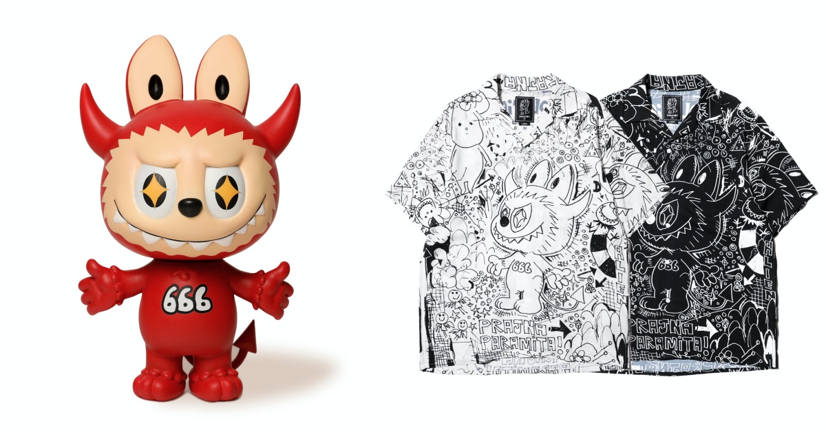 而後透過The Little Hut的居中協助聯繫溝通,耗時兩年多的漫長溝通和來回討論,三個單位終於完成這個當年的約定。家昇老師替本次聯名企劃繪製了One of One的原創畫作,畫中結合了知名的角色 Labubu、666以及來自AES的各種元素,而畫中的666 Labubu也將推出限量公仔(AES限定配色/限量300隻),而AES也將畫中元素結合品牌經典輪廓版型,設計出短TEE、帽TEE、托特袋等獨家熱門商品,將於3月26日凌晨12點於ALIEN666官網獨家發售。