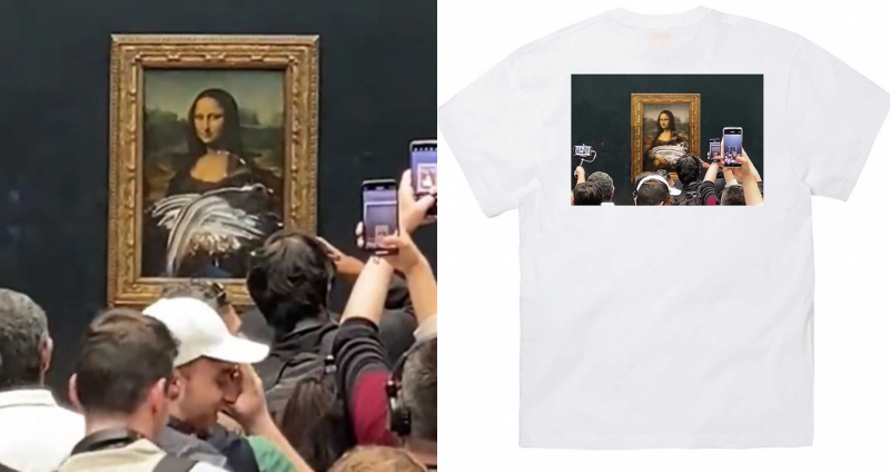 丟擲蛋糕的男子疑似為了環保理念而做出脫序行為,#FR2 也在內文開酸,「向蒙娜麗莎扔蛋糕也保護不了地球」,而這款「反映現代社會」照片 T-shirt 目前已經在 #FR2 官網開放預購,售價為 7700 日圓,預計六月中旬到貨。
