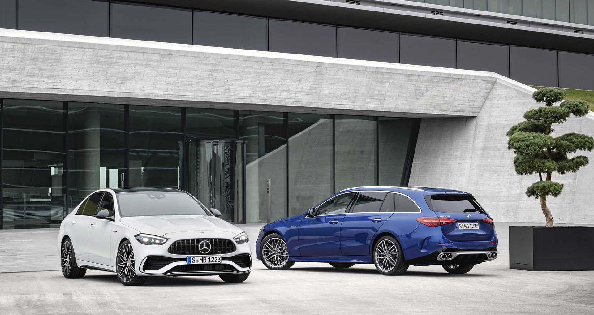 直接為四門房車 Sedan 和旅行車 Estate 推出 C 43 4MATIC 版本,屬於 AMG 支線的造型元素:直瀑式的水箱護罩、雙邊共計 4 出的排氣尾管、滿滿的 AMG 銘牌,和代表新世代動力系統的「Turbo Electrified」徽飾等等,輪圈搭配從 18 吋起跳、並且提供最大 20 吋的選擇,後輪轉向系統亦是標準配備,提供最大 2.5° 的轉向角度來提昇操控性。