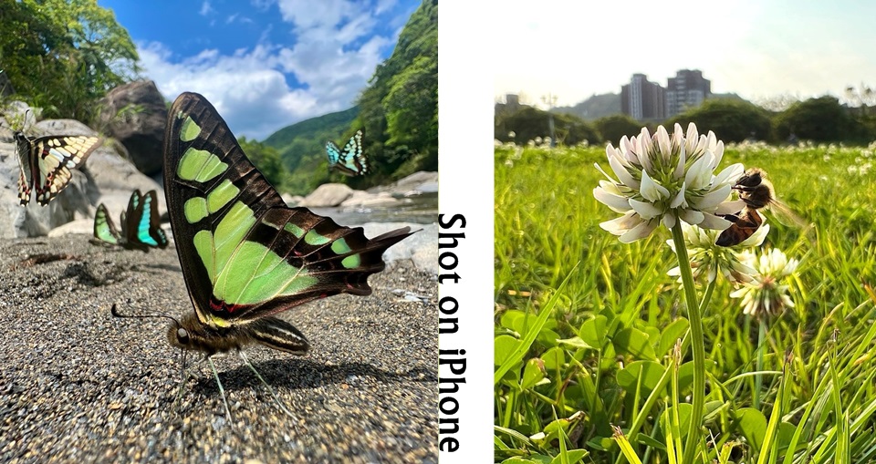 當拍攝主角實在太小的時候怎麼辦?施信鋒表示拍攝的主角實在太小了,就算很靠近拍放大倍率也不夠,施信鋒建議這時候就可以善用變焦的功能,在 iPhone 上我們可以選擇 0.5X,就是超廣角鏡頭的倍率,當拍不夠大時我們可以選擇切換到 1X 取得較為緊密的取景,雖然做了倍率上的切換,但此時是在微距模式操作,相機拍攝的鏡頭還是超廣角,當你靠近景物時,iPhone 會自動切換相機,同時維持 1x 取景。