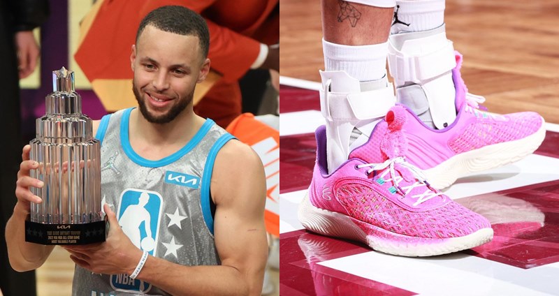 因為場內外的表現都成為話題熱門,Stephen Curry 於明星賽實著的簽名球鞋,自然也成為鞋迷們關注的焦點之一。本次咖哩穿著的球鞋為同屬於芝麻街聯名的 Curry 9「Abby Cadabby」,配色靈感出自於芝麻街節目裡的布偶仙子 Abby Cadabby,整體以一襲吸睛粉紅色為主軸,部分細節點綴上了水藍色,呼應角色個人特質,展現夢幻般的魔法氛圍。