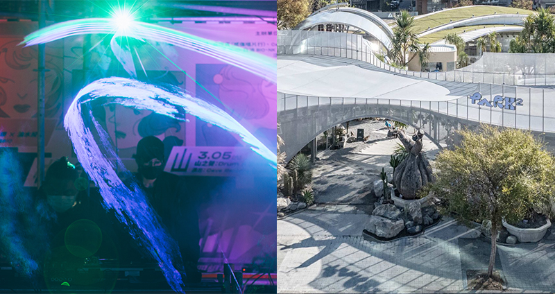 PARK2 期間限定的開幕主題活動,找來同樣位在台中的 感傷唱片行 創辦人 游璨賓 擔任總策展人,看中 PARK2 由珍稀塊根植物妝點、獨特又充滿綠意的景觀空間設計,以及適合三五好友聚會、瀰漫輕鬆寫意的氛圍,以「城市綠洲」的整體氣氛感受為靈感,號召了藍色唱片行的JJ、DJ 愛吹倫、Cave Records 的 FTK & Scott Noise 和感傷唱片行 游璨賓 自己在內,共四位台中 DJ,各以「風、火、山、林」自然元素作為創作主題,透過實驗電子、雷鬼、台語和 Drum n Bassk 的不同曲風,搭配雷射燈、油水投影、燈管裝置的視覺演出,開放性的舞台更拉近演出者和民眾間的距離!
