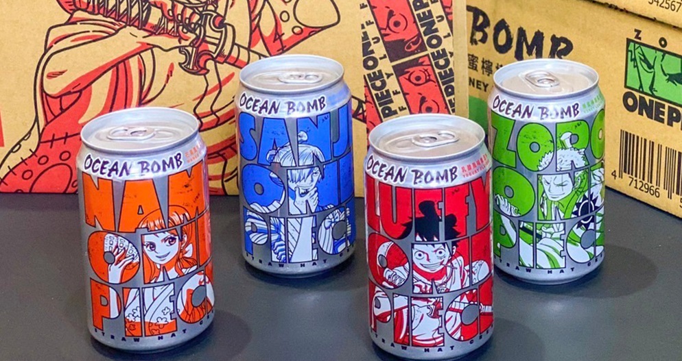 繼《七龍珠》、《超人力霸王》、《美少女戰士》之後,Ocean Bomb 氣泡水全新推出《航海王》聯名款,首波推派出魯夫、娜美、索隆與香吉士 4 位主角,以乳酸、芒果、蜂蜜檸檬與熱帶水果不同的新風味,要讓航海王的粉絲們享受大海冒險般的沁涼魅力!