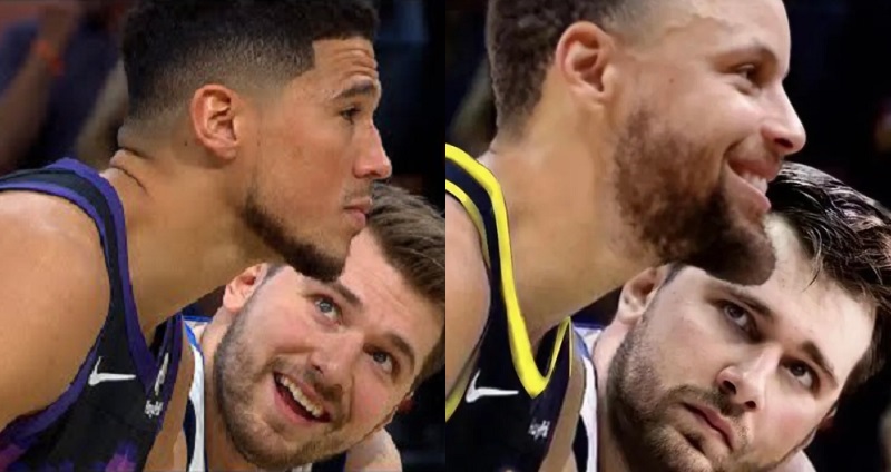 上一輪打爆太陽之後, Doncic 在比賽中被拍到笑著看 Devin Booker ,帶有一些挑釁意味。但今天之後美媒 Warrior on WBCS 放上了一張改圖,畫面中 Curry 笑開懷,而 Doncic 則神色凝重地看著他,讓人莞爾。