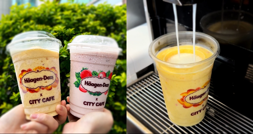 在哈根達斯冰淇淋中加入CITY CAFE 牛奶,綿密滑順的口感就像喝奶昔一樣。(圖片來源:COOL)7-11 x 哈根達斯聯名限定冰沙,分別以繽紛的仲夏芒果黃、粉嫩草莓紅色系融入杯身設計。(圖片來源:COOL)