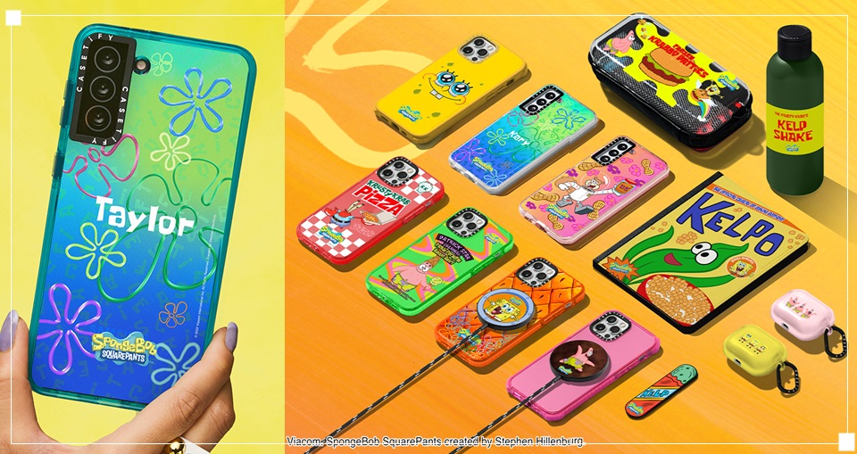 Nickelodeon 尼克兒童頻道旗下知名動畫《海綿寶寶》首播至今 23 年,受到全球各年齡層觀眾的喜愛。今次 CASETiFY 首度與《海綿寶寶》推出限量聯名電子配件,以「比奇堡野餐」為設計靈感,邀請海綿寶寶的粉絲們與海綿寶寶、派大星、珊迪、章魚哥和蟹老闆一起加入在 CASETiFY 各式經典手機殼上舉辦的歡樂野餐派對。除了強悍防摔手機殼、特強防摔手機殼,以及特強防摔竹纖維手機殼外,亦包含 AirPods Pro/iPad/NintendoSwitch 保護套、磁吸式無線充電盤、平貼式指環支架,以及印有海綿寶寶最愛的美味蟹堡與 Kelpo 麥片的不鏽鋼保溫瓶。