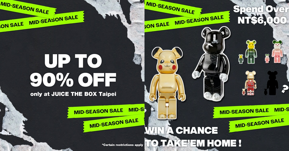 CLOT、FOG、 Nike 等人氣品牌一折起!JUICE ‘THE BOX’ 台北富錦店特賣會開催,買額再抽 BE@RBRICK !