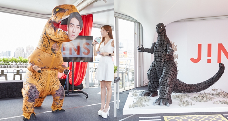 「破鏡重生-哥吉拉」今日(5/7)起,將擺放在台北市大稻埕貨櫃市集一個月,JINS表示,將廢棄眼鏡打造成哥吉拉,是因「電影中哥吉拉除了代表著大自然對人類的反撲外,同時也是恢復大自然平衡的王者」,希望藉由哥吉拉這個IP,呼籲大眾共同守護我們所居住的地球。