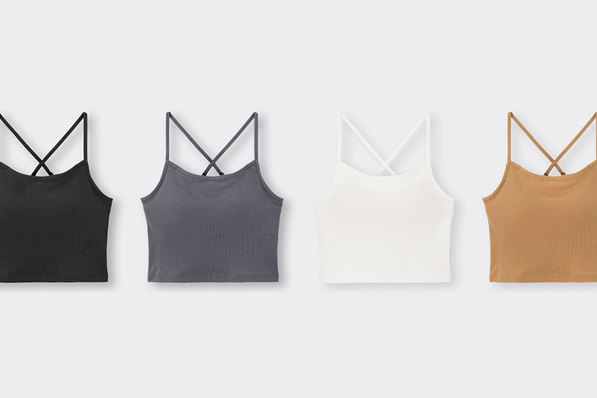 可以看到不少日本時髦博主也分享了這件 GU 的平價背心,襯以羅紋的細肩帶款式,能讓你有交叉穿著的第二種穿法,同時附上能展現自然胸型的罩杯,讓你於夏日穿著時不再因為多件內搭而感到悶熱,並且利用側面彈性布料來讓胸型自然集中,短版的設計在下擺處使用不緊繃的剪裁,更能展現腰身的顯瘦效果。