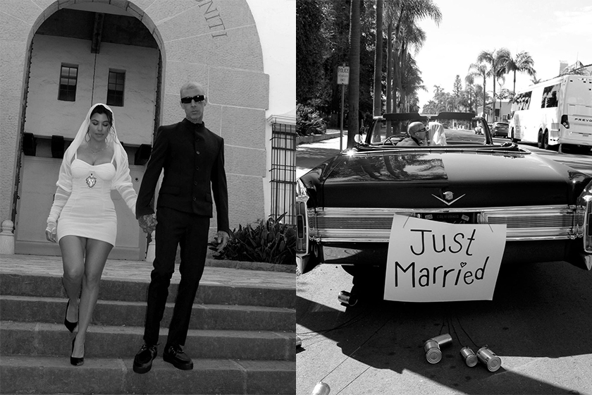 除了婚紗,婚照中的另一看點則落在了他們乘搭的開篷跑車,車牌換上了手寫字體「Just Married」,當一對新人坐在車上時,配合充滿童趣的車牌,頗為符合 Kourtney Kardashian 低調又隨性的個性。加上 Travis Barker 在 Instagram 上以「Till death do us part(至死不渝)」的字句來配合照片,令整場婚禮顯得可愛又甜蜜!有傳聞這次的婚禮只招待了 Kourtney Kardashians 祖母 Mary Jo Campbell 以及 Travis Barker 的父親 Randy,之後他們可能會再補辦一場較為大型的婚禮,邀請全部家庭成員,未知屆時會否看到 Kardashian 家族全體成員出席!