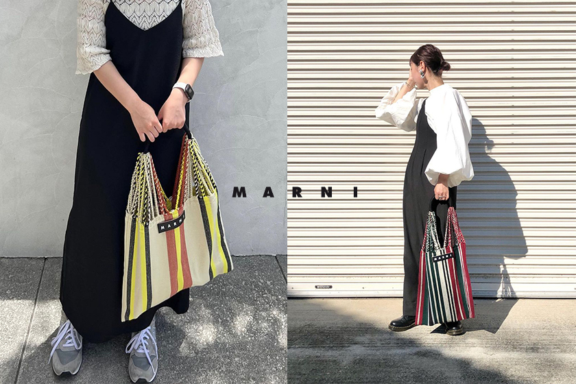 日本女生的時尚風格十分值得我們參考,同為亞洲人的身形,但是她們卻十分擅長混搭風格以及發掘實用又美觀的時尚單品,例如 Uniqlo 大熱的打褶寬褲、Jil Sander 的橫間 T-shirt 以及 Zara 的短版翻領牛仔外套等。近日又有一款手袋引起她們關注,近乎人人手執一個的受歡迎程度,那就是來自 Marni Market 的「吊床包」了!