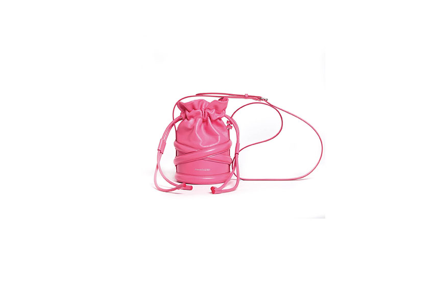 2022 春夏系列的新成員,在輪廓同樣延續袋身正面緊繞袋身的粗大馬韁繩細節,不過面料變為較為柔軟的 Nappa 皮革,以及款式從原先的雙層袋蓋改為水桶包,以抽繩系列搭配可調節肩帶,還可用作斜挎包或單肩包,正面壓印 Alexander McQueen 標誌,除了淺藍色和粉紅色等鮮豔的顏色外,還有推出經典基本的白黑雙色和全黑配色,Alexander McQueen Soft Curve 全新手袋預計於 2022 年 2 月下旬發售。