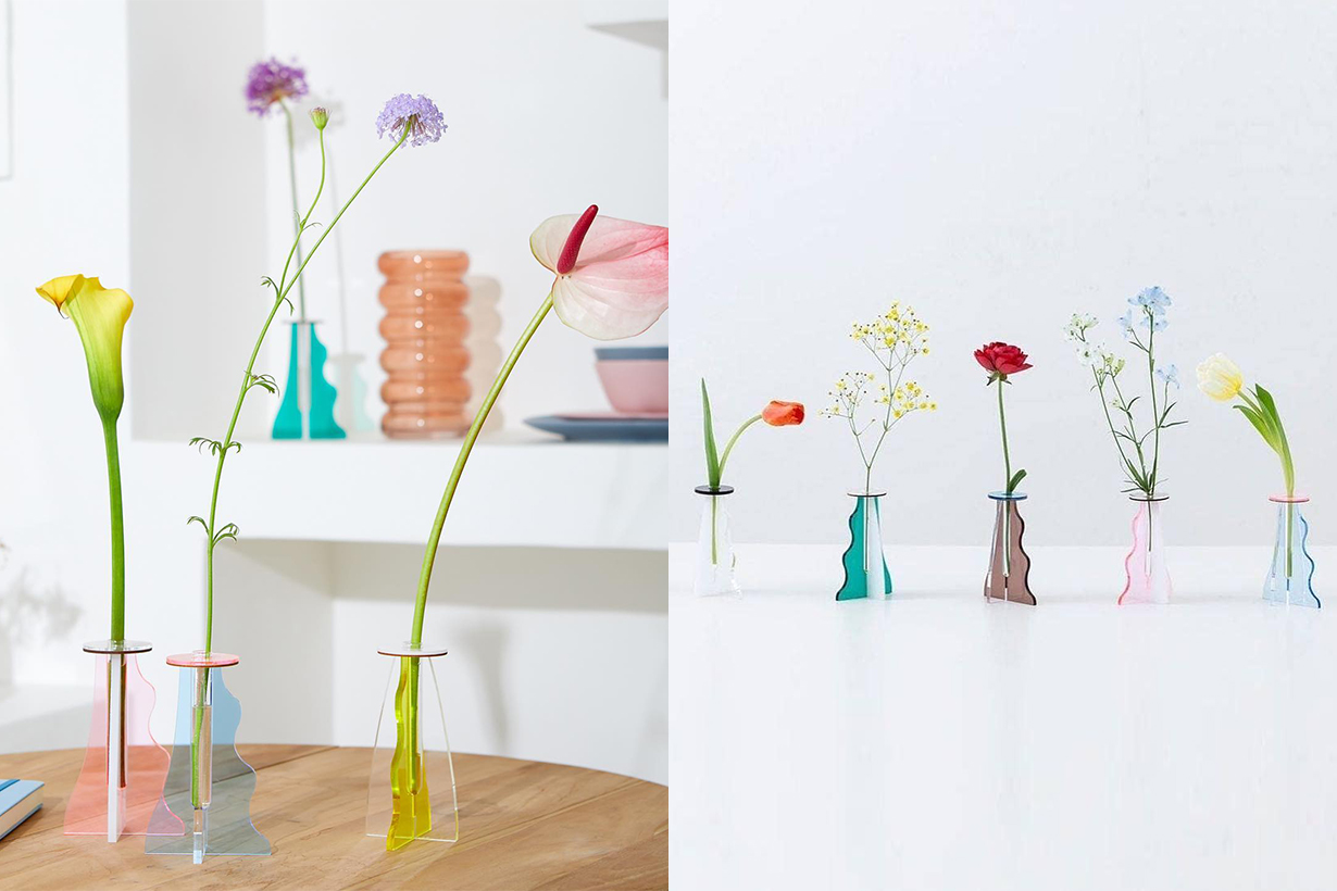 來自日本的飾品配件品牌 Plying,就是以壓克力材料作為靈魂角色,斑斕的色彩與質樸的透明感,搭配上木質細節,呈現與眾不同的個人風格,清新的氣息默默被許多日本女生收藏,而 Plying 所推出的這款花器,同樣採用不同色彩的壓克力相互拼接,並搭配一套兩種材質的圓盤固定。