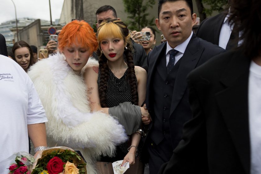 在世界的另一頭,巴黎現在因為男裝週可以說是星光熠熠,Celine 秀上有 Lisa、BTS V、朴寶劍,而 Loewe 這一邊,去年夏天成為品牌大使的泫雅,正參加著第一場 Loewe 大秀,而且還牽手了另一半 Dawn 一起,從韓國機場到巴黎,踏入秀場,到現在留在巴黎玩耍,滿滿的粉紅泡泡可是都吸引了不少粉絲關注。