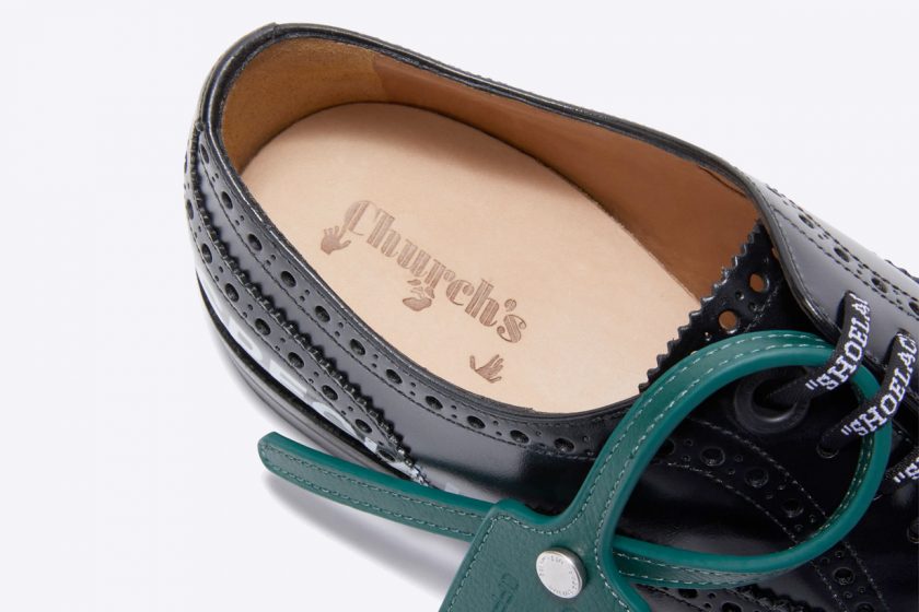 雖然這不是 Off-White 第一次推出皮鞋,不過若是指波鞋上的「“」字樣、束帶等標誌的設計,這一回倒是首次出現在皮鞋上。Off-White 稍早公開了與英國手工鞋品牌 Church’s 的攜手,來自創辦人 Virgil Abloh 未完成的計畫,第一雙和大家見面的鞋款,正是 Church’s 從 1953 年打造至今的經典 Burwood。