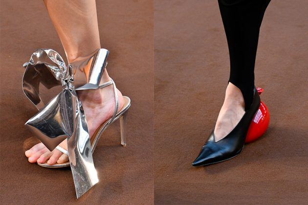 談及 Loewe,相信大眾最關心的莫過於品牌的一系列配飾,先來看看大家最感興趣的手袋。在今季的秀場上並未捕捉到特別矚目的新袋款,Jonathan Anderson 反而重塑了不少經典袋型,例如加入鏈帶細節以及新配色的 Puzzle Bag、以全新面料打造的 Flamenco 以及變得柔軟膨脹的 Goya。而外界的另一焦點則落在了一系列設計新穎的鞋子上,好比在男裝週登場時就引起轟動的 「Flamenco 手袋鞋」、飾有特大銀色蝴蝶結的幼帶高跟涼鞋、刻上 Loewe logo 的搭扣涼鞋等。