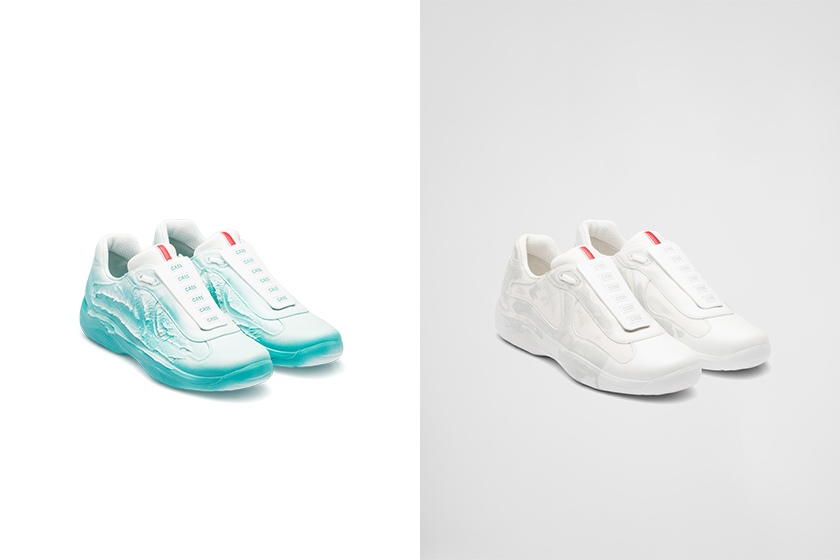 本次 Cassius 一系列獨特款式重構 America’s Cup 運動鞋,為 Prada Linea Rossa 系列創作的特別計畫增添獨樹一格的設計,由 Axel Morin 執導拍攝的靜態形象廣告也與其相互呼應:一場侵入原始空間的超現實表演。Cass x Prada 系列全球僅限量 3000 雙,每個標籤皆有獨特的 CASS 簽名,盒上的腦部掃描標誌也再次代表了 Cassius Hirst,目前此鞋款將於指定 Prada 專門店及官方網站發售。